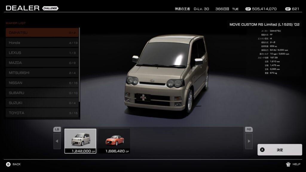 軽自動車のスペシャリストとして知られるダイハツからは、コンパクトなボディを持つ2車種が参戦。 絶対的なパワーでは普通車に劣るものの、その最大の武器は圧倒的な軽さにあります。軽量な車体はコーナリングで非常に有利に働き、特にテクニカルなコースでは侮れない存在です。 初期投資を抑えつつ、チューニングとドライビングテクニックで格上の相手に挑む楽しさがあります。