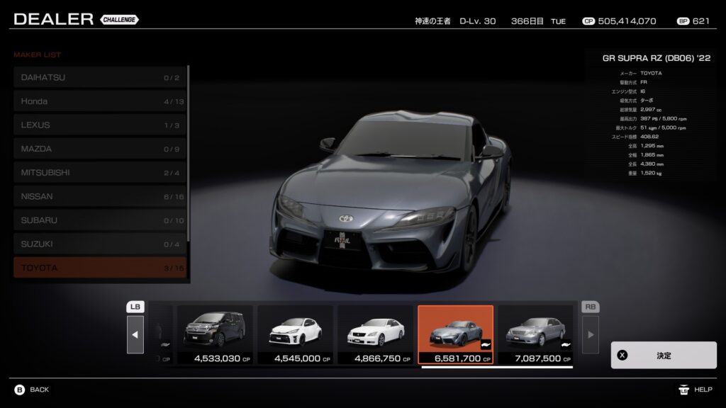 - ゲーム内での評価:『新時代のFR優等生』 日産Z(RZ34)の、最大のライバル。Zが「JDMマッスル」的なキャラクターなのに対し、スープラはより洗練された「欧州スポーツ」的な挙動を見せる。ノーマル状態での完成度が非常に高く、初心者から上級者まで、誰が乗っても速く、そして楽しめる。グリップでもドリフトでも、常にトップクラスの戦闘力を誇る。