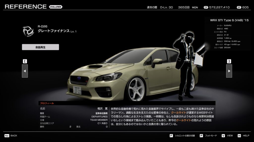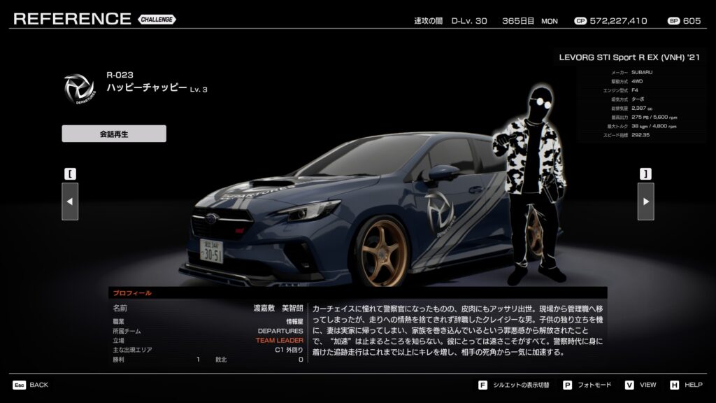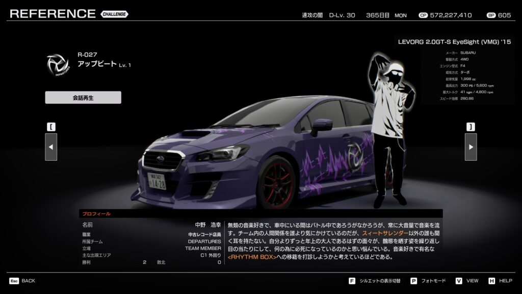 車内では常に大音量で音楽を流し続ける音楽狂。チーム内の人間関係をかき乱しがちだが、彼の存在がDEPARTURESに異様なリズムを与えている。音楽好きとして知られ、ライバルである「RHYTHM BOX」への移籍を考えているという噂もある。