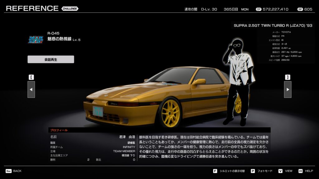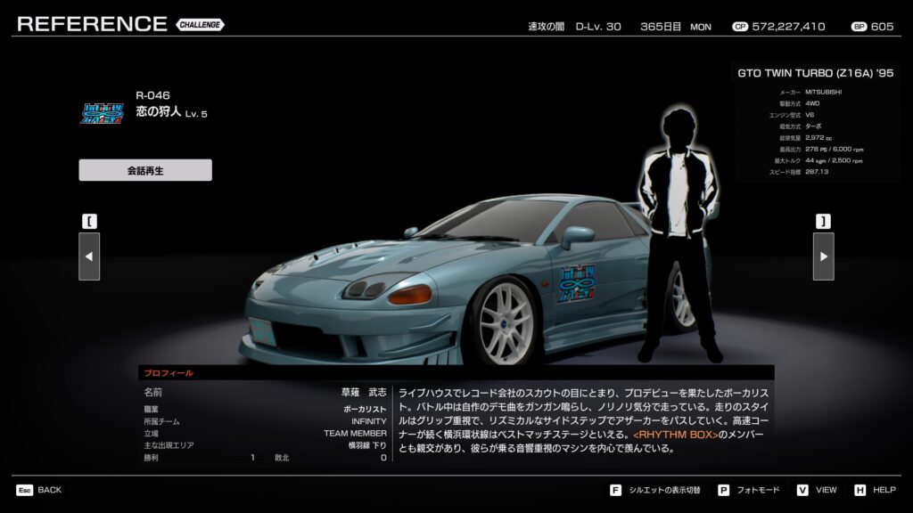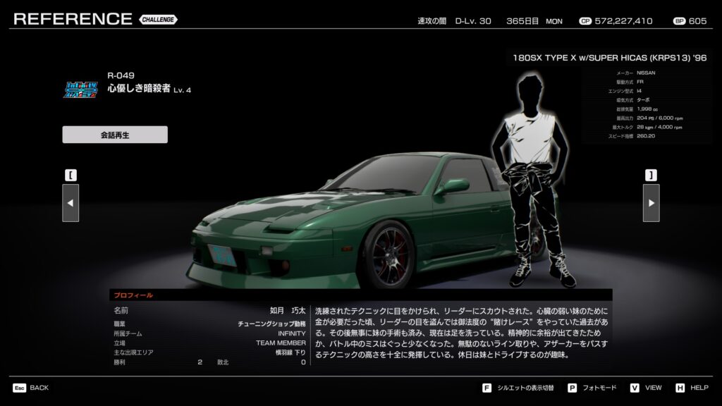 直線でのMAXスピードは驚異的で、リーダーの信頼も厚い。反面、金回りが良すぎるためスポンサー的な立ち位置を疑問視される場面もある。