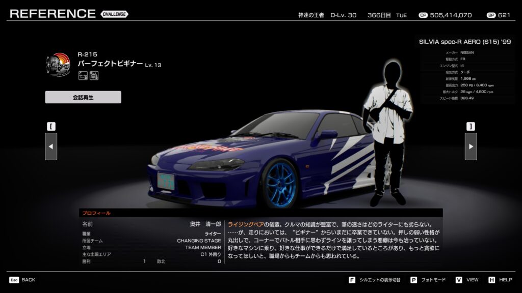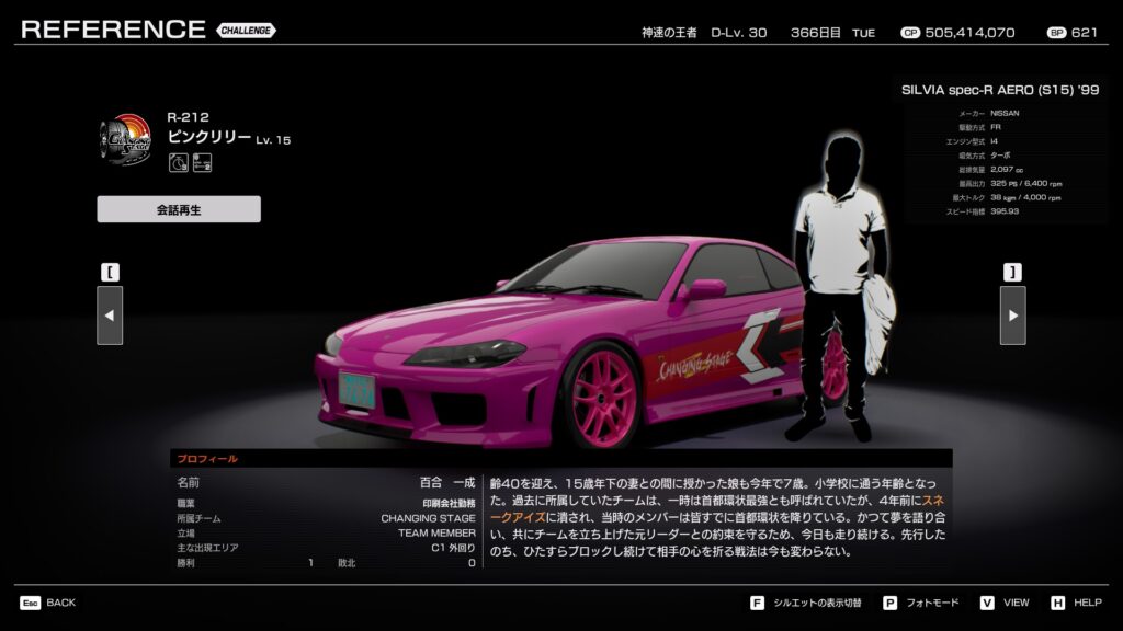 - 全員がS15シルビアに乗るワンメイクチームであり、マシンの基本性能は近い。