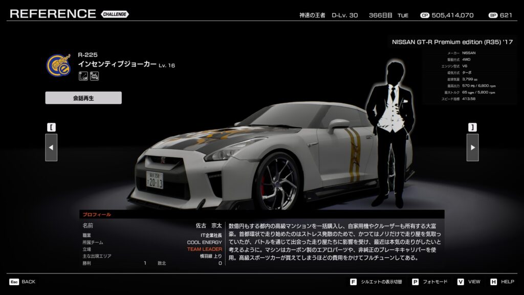 - プロフィール 「インセンティブジョーカー」と共に会社を設立した役員。会社を成長させていく中で、リーダーとの心の距離が開いてしまったが、<COOL ENERGY>として共に走ることで絆を取り戻した。チームが本気で勝利を求めるようになり、走り屋の熱い魂が蘇っている。