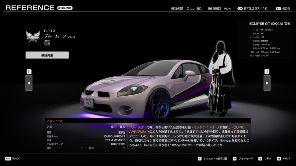 ロリータ服を好むが、その見た目とは裏腹に鋭い走りで知られる。チーム〈DESIRE〉とも友好関係を築き、PACで共に活動。
