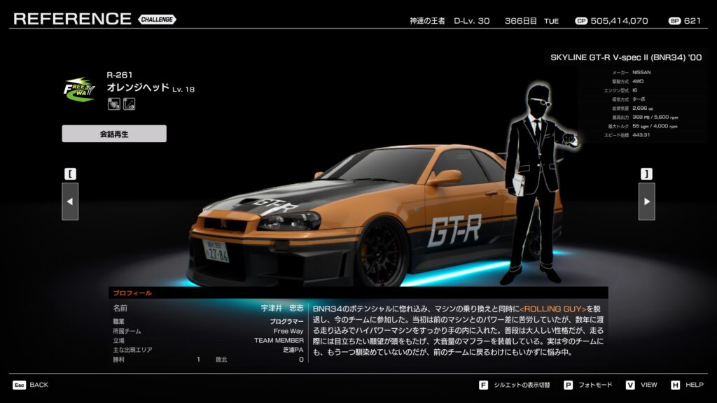 - リーダーと「シルバーフォックス」が駆るR35は、他の世代とは一線を画す絶対的なパワーを持つ。直線での勝負は非常に厳しい。