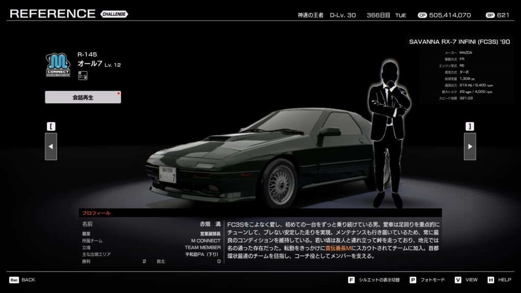 - プロフィール: 愛車のFC3Sをこよなく愛し、初めての一台をずっと乗り続けている。ブレない安定した走りを実現するため、常に最良のコンディションを維持。リーダーとは旧知の仲で、首都高環状連合のチームを目指し、コーチ役としてメンバーを支える。
