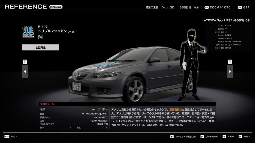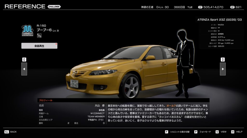 - プロフィール: アメリカ支社からの転勤を機にチームに参加。英語・日本語・中国語の3ヶ国語を操る。PAでの情報収集を得意とし、加速重視のセッティングを好み、短期決戦に持ち込む戦術が得意。