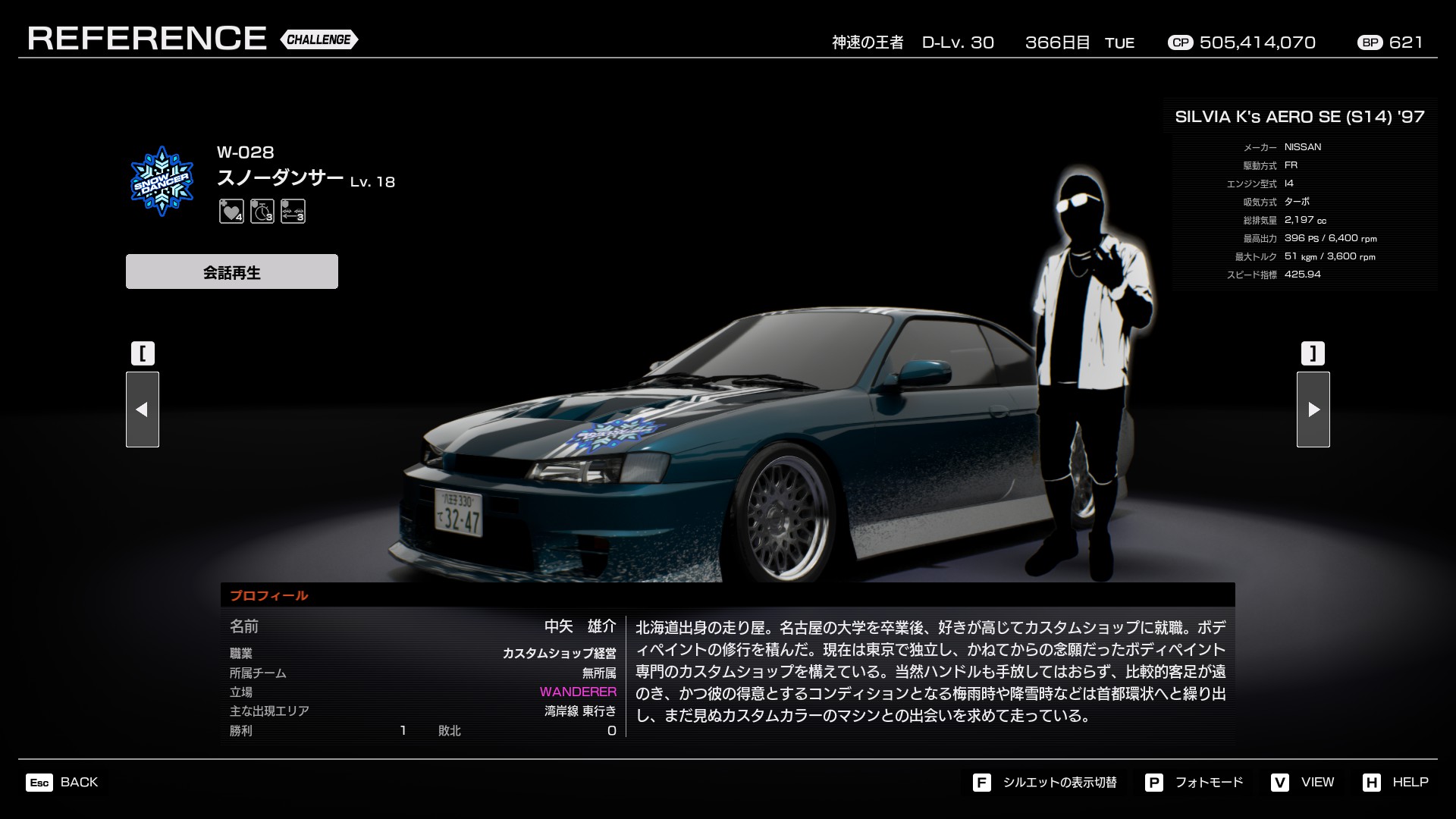 - 軽量なFRスポーツである180SXを駆り、機敏な動きを見せる。