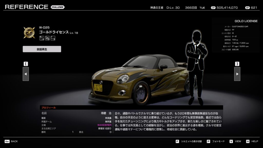 - 搭乗車種:GOLD LICENSE (カスタム COPEN Cero)