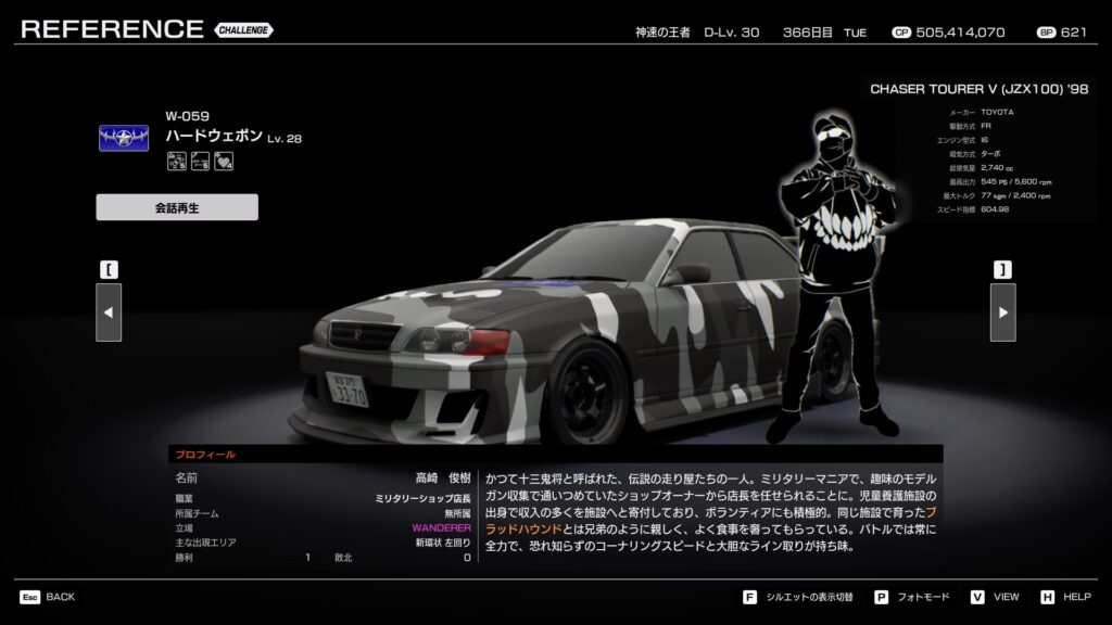 - 「十三鬼将」の一人であり、非常に高いドライビングスキルを持つ。