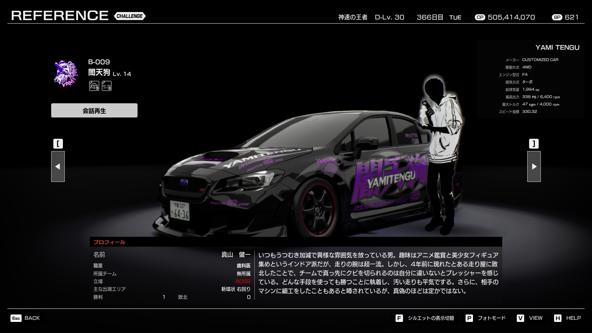 - 搭乗車種はFRカスタムカー(RX-7ベース)。コーナリング性能が高い。