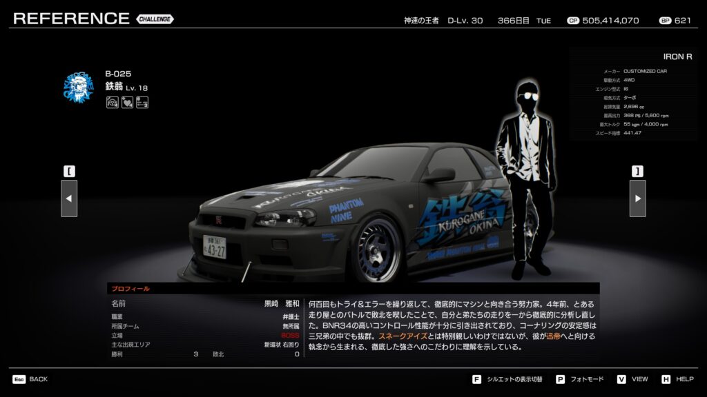 • 搭乗車種:IRON R (BNR34 GT-Rベース カスタムカー)