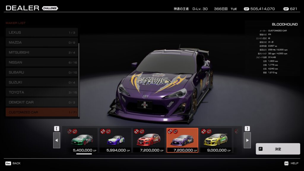 PC版『首都高バトル』のカスタムカー枠にあるBLOODHOUNDは、パネルの数値がかなり“わかりやすい”タイプです。