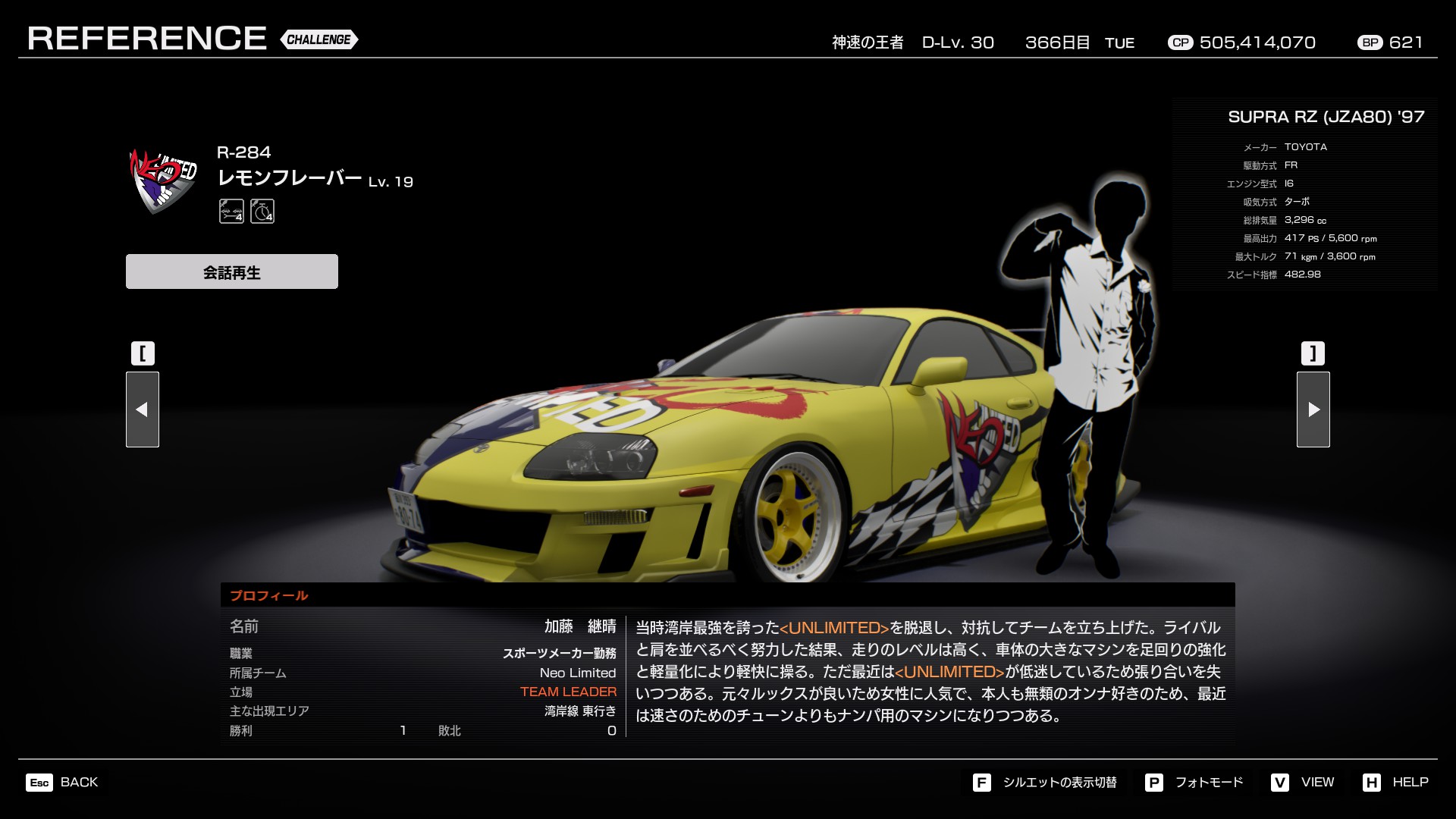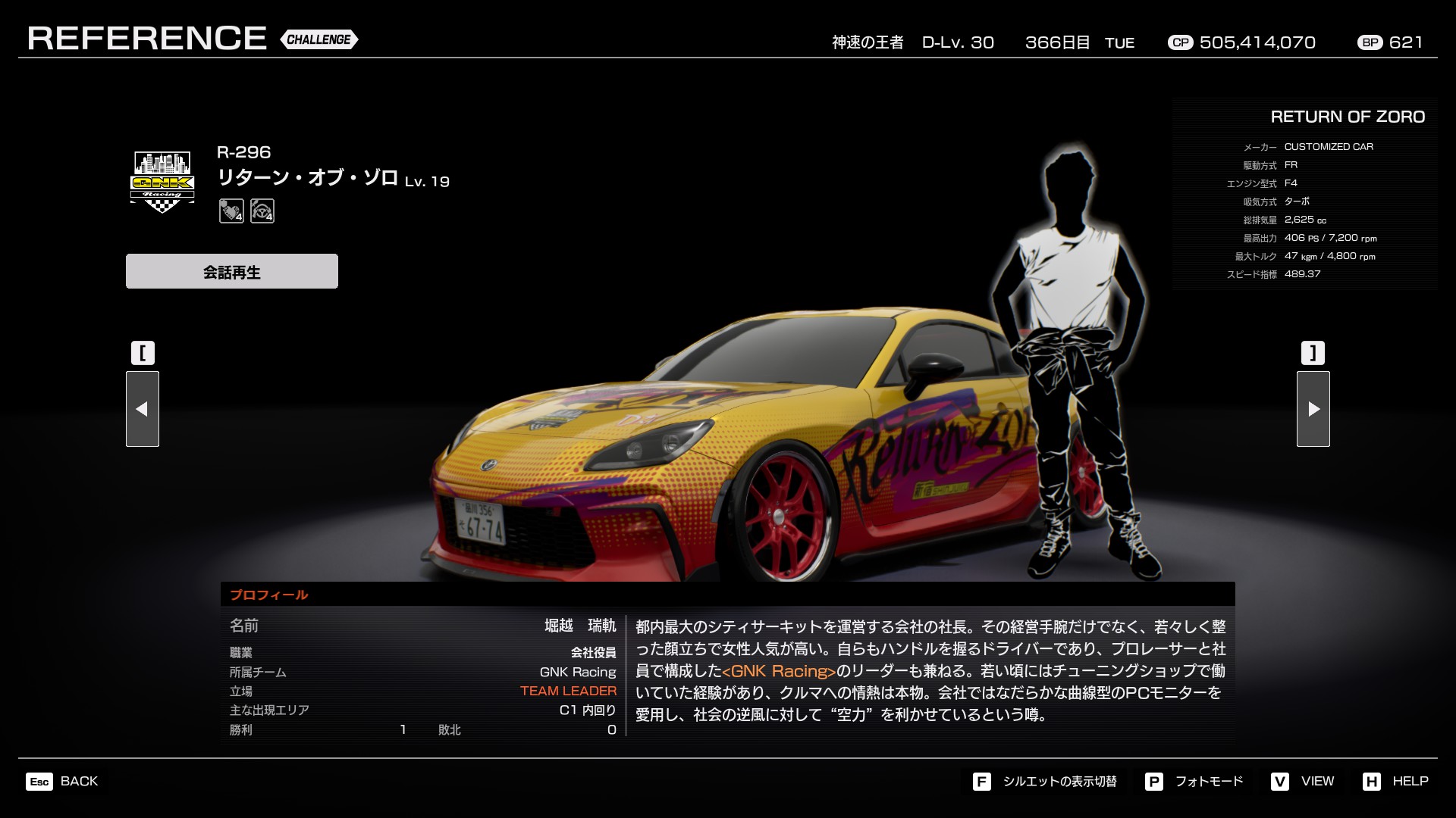 概要 出現エリア:C1 内回り チーム台数:6台 代表車種:スバル BRZ (ZDB), トヨタ GR86 (ZNB) チーム紹介 巨大シティサーキットを運営する会社の女社長「リターン・オブ・ゾロ」こ ...
