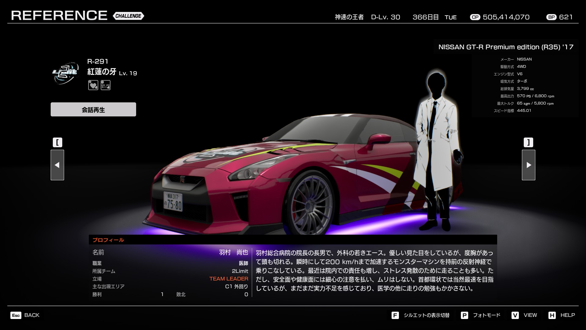 概要 出現エリア:C1 外回り チーム台数:4台 代表車種:日産 GT-R (R35), トヨタ スープラ (JZA80), 日産 スカイラインGT-R (BNR32) チーム紹介 「紅蓮の牙」こと羽 ...